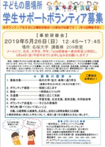5月26日(日)に名桜大学・講義棟209教室(2階)で、第2回目の事前研修会を開催いたします。子どもの居場所学生ボランティアセンターへ学生サポートボランティアとして登録するためには、事前研修会を受ける必要があります。