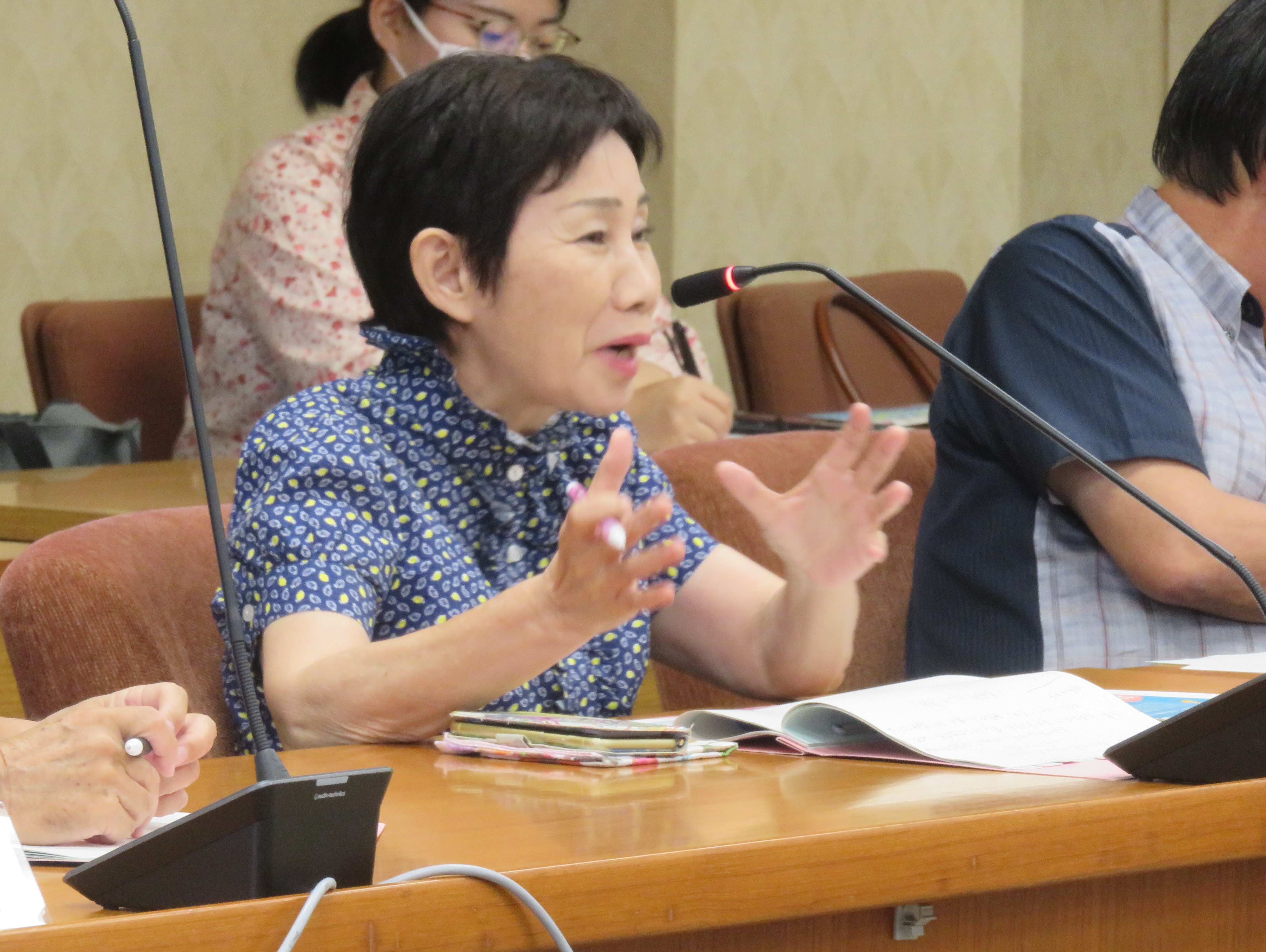 その後、各委員から派遣者数の状況や学生の所属学部の内訳、事業周知への取組、学生自身にとってのインセンティブ等について質問が行われました。