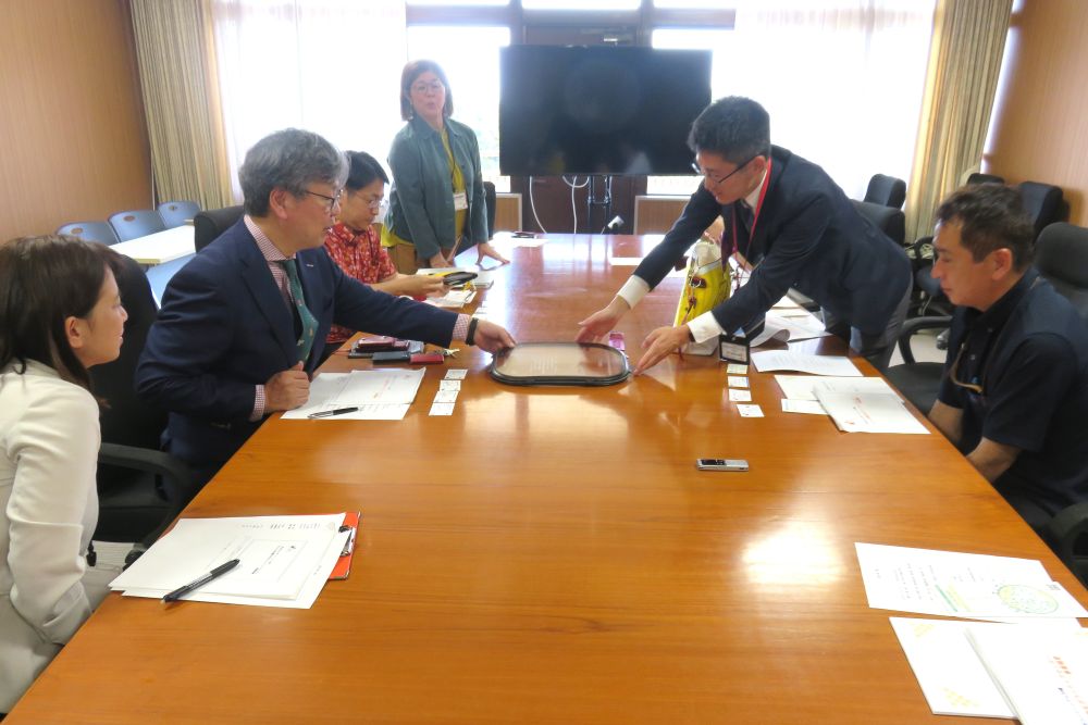 令和7年4月16日(水)、企画・製作にかかわった整備部門の方々が来訪され、製品を拝見しながら、お話を聞く機会をいただきました。令和4年度より、航空機の廃材を利用して製作された商品の売り上げを、県内の子ども貧困対策へ取り組む各団体へ寄附されており、本来であれば廃棄される航空機部品を、各社員がアイデアやデザインを出し合い、商品として制作されているとのことです。