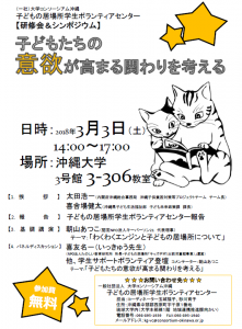 子どもの居場所学生ボランティアセンター【研修会&シンポジウム】を開催します(H30.3.3)
